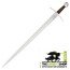 | Specification | Total Length: 97cm Blade Length: 81cm Blade Width: 4.7cm Guard Width: 21cm Grip Length: 10cm Point of Balance: 14cm Material: High Carbon Steel Blade, Leather Grip Edge: 1.5mm Blunt Pommel: Peened Scabbard: Wood, leather, steel All dimensions are approximate and may vary from piece to piece. |