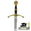 Our Crusader Sword is a product of the world famous Art Gladius factory in the historic sword manufacturing city of Toledo, Spain. Toledo has a reputation for producing some of the finest swords in Europe and has been a centre of sword production for centuries. The antique brass hilt features the cross pattée of the Templar Order on the pommel and belted grip. The Cross of St George is featured at the centre of the cross-guard. The hilt has an antiqued brass finish and cord wrapped grip. The blunt stainless steel blade features heraldic decoration and is suitable for display only.