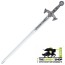 Our Grand Master of Templars Sword is manufactured by the world famous Marto factory in Toledo, Spain. It features an ornate hilt with an antiqued bronze and silver finish that is heavily decorated with Templar symbols including the Cross Pattée and Templar Seal. The blunt, decorated blade is and crafted from AISI 440 Stainless Steel and tempered. This sword is designed for display and ceremonial use and is not suitable for contact re-enactment.